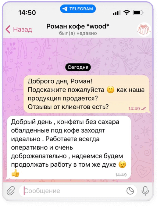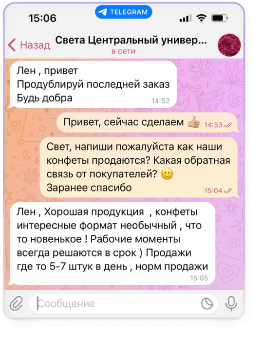 Работаем не только над составами конфет, но и над развитием продукта. Мы следим за спросом и ежегодно пополняем линейку новыми сладостями, которые понравятся клиентам.