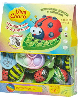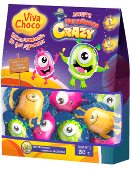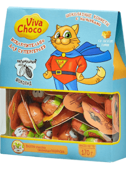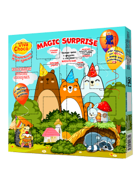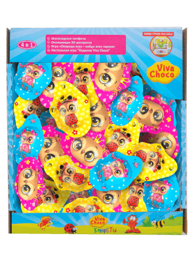 Натуральные шоколадные конфеты с начинками для детей. Не только вкусные, но и интересные! Дизайн упаковки в виде животных и любимых героев, а в каждой коробке есть вложение с раскраской и настольной игрой с дополненной реальностью.