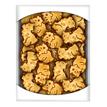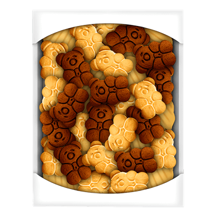 В составе печенья нет вредных трансжиров, ароматизаторов и консервантов — их можно смело давать детям! Необычная форма порадует малышей, а знакомые с детства вкусы — взрослых. Идеальное лакомство к чаю для всей семьи или вкусный подарок близким.